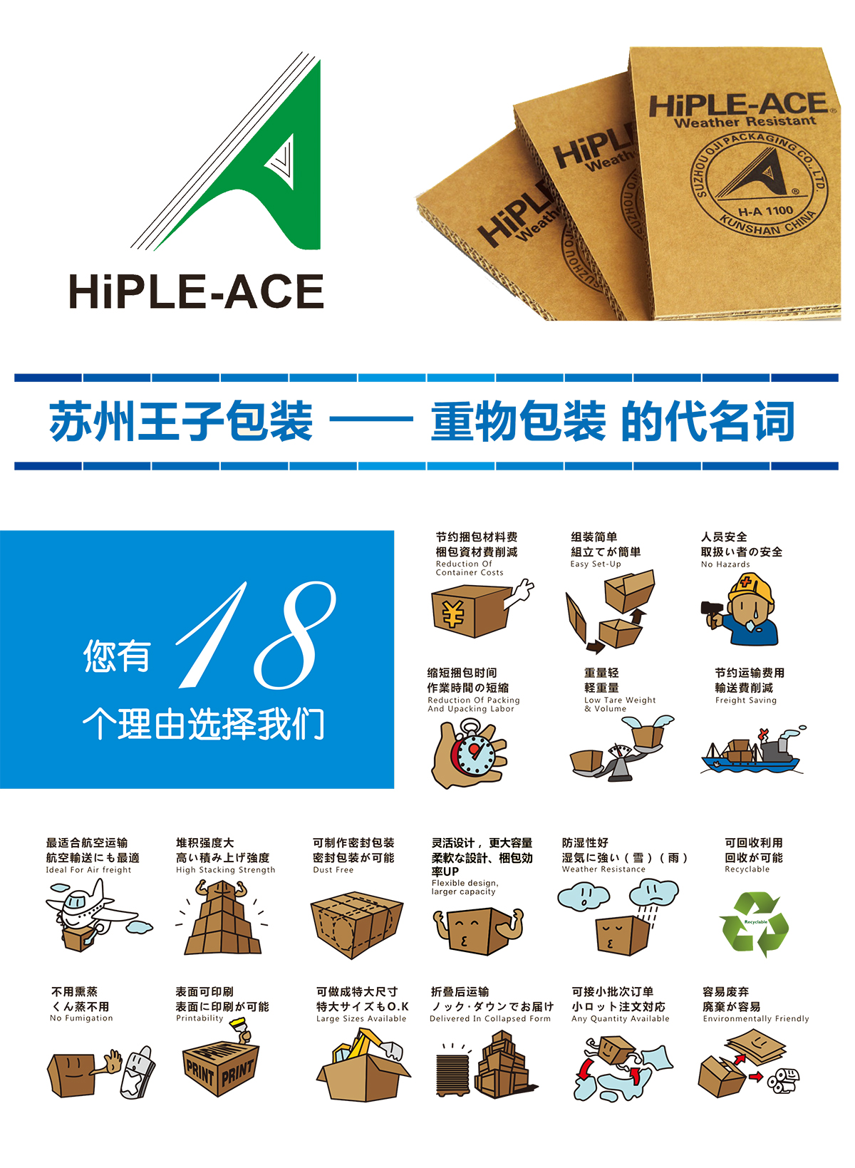 通过有效利用HiPLE-ACE®本身的冲击吸收性的包装设计。大量减小包装的体积。与木箱相比较能削减10%~40%,大幅提高装载效率。从而大量削减货运成本。